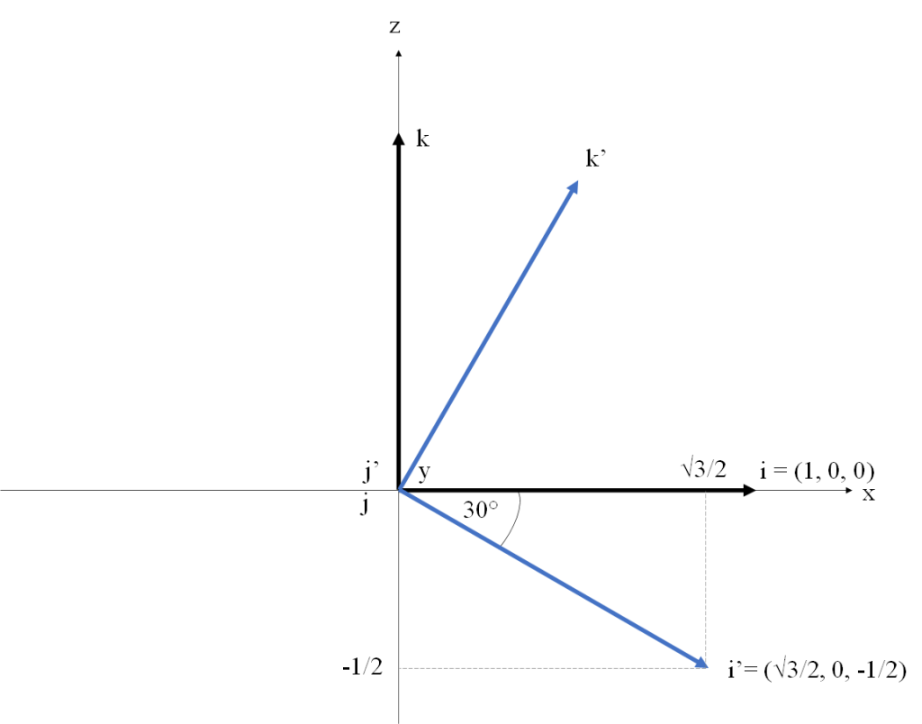 Alternatively, we can leave the basis fixed and rotate the vector 30 degrees clockwise (i.e. applying the inverse of